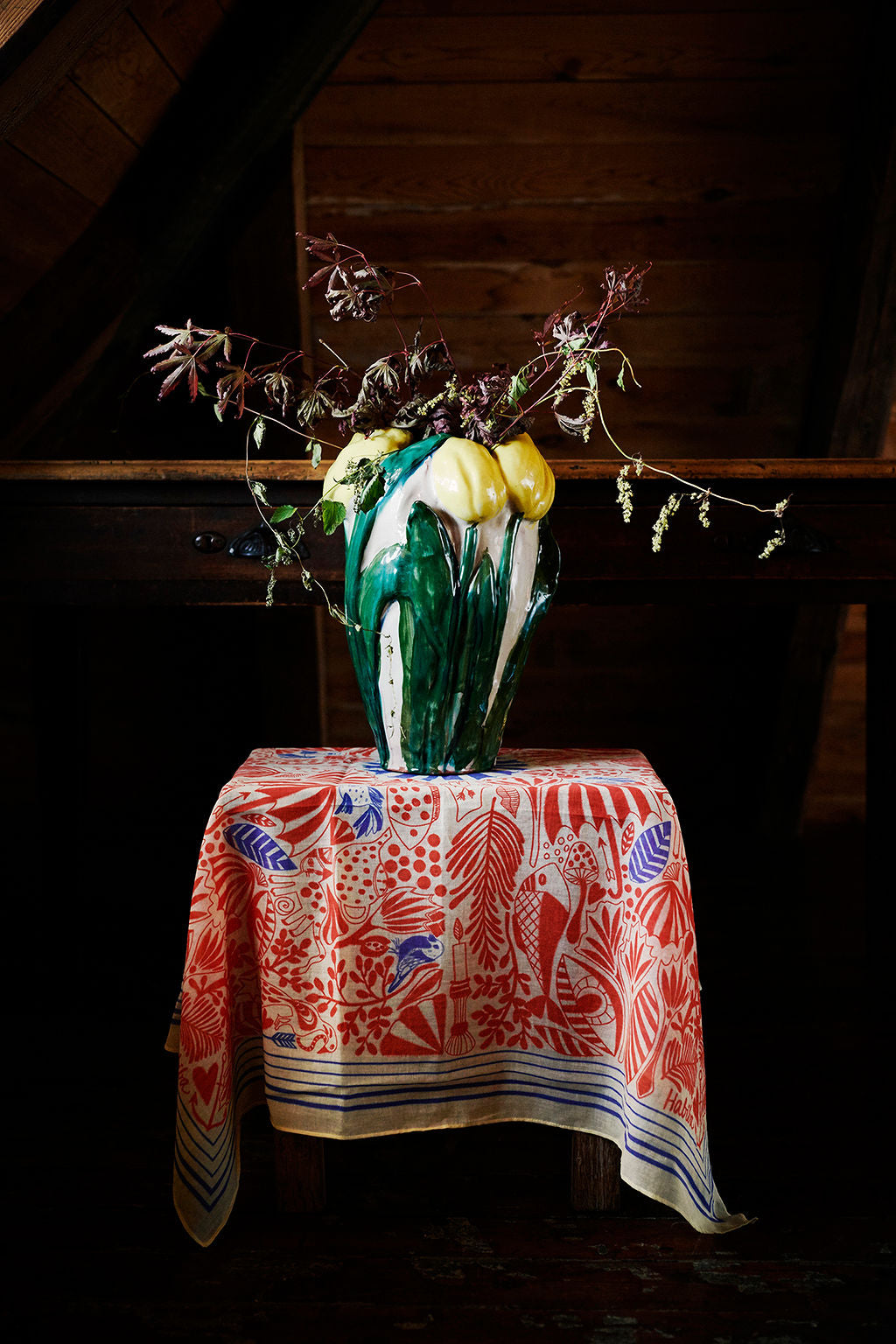 The scarf has a nice and quirky hand illustrated position print with many small details.