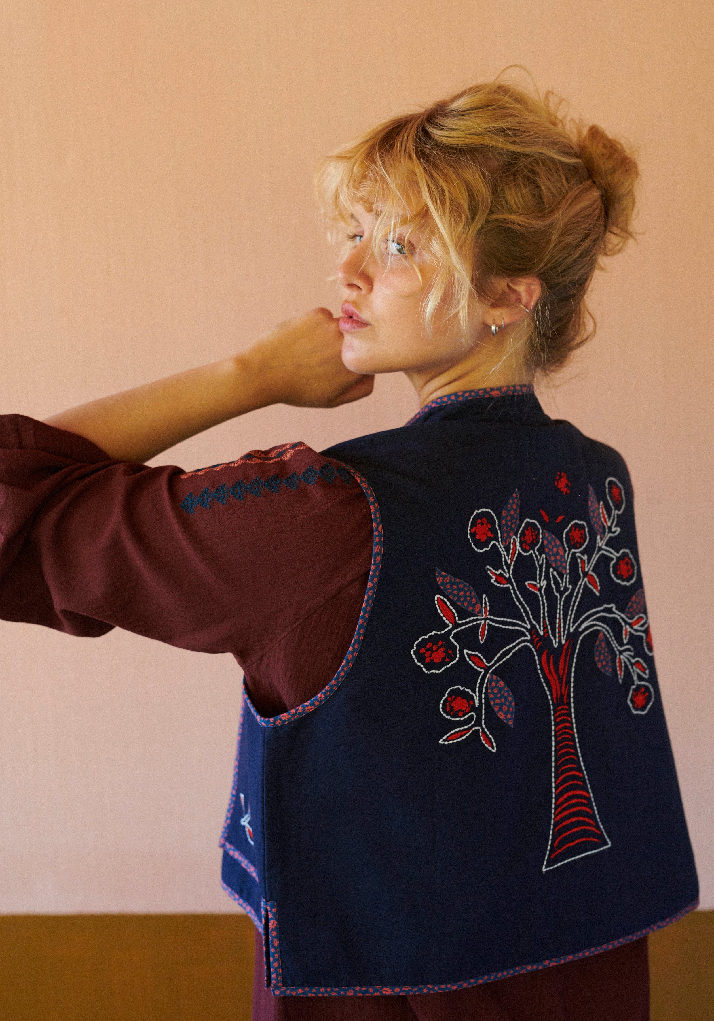 BOHEMIA is a beautiful story with embroideries and applications. The life tree is a part of our Ukrainian inspiration, symbolising the family tree featuring the unity between the past, present and future. Continuity of family and heritage, cycle of life, underworld, earth, heaven, beauty and renewal, immortality and fertility.